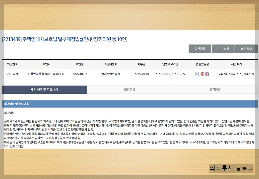 이번 개정안은 전세사기 및 보증금 미반환 문제와 임차인의 안정적인 주거를 위한 목적의 발의라고 하는데..많은 논란이 있지 않을까 합니다.