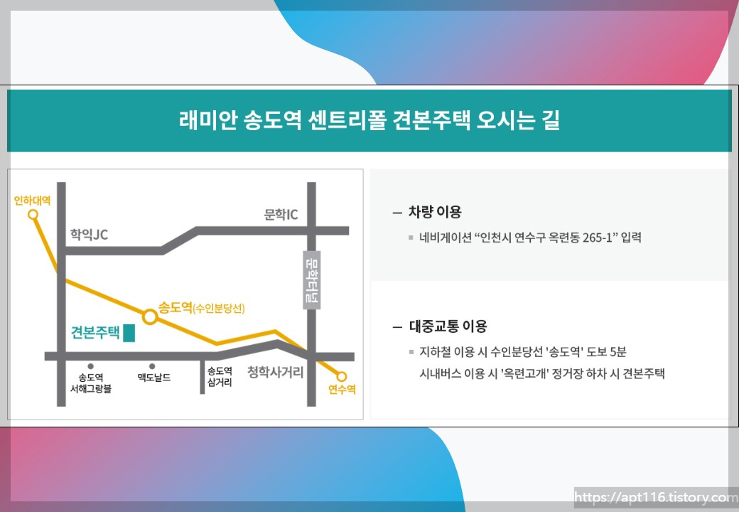 래미안 송도역 센트리폴 모델하우스는 현장인근에 있습니다.