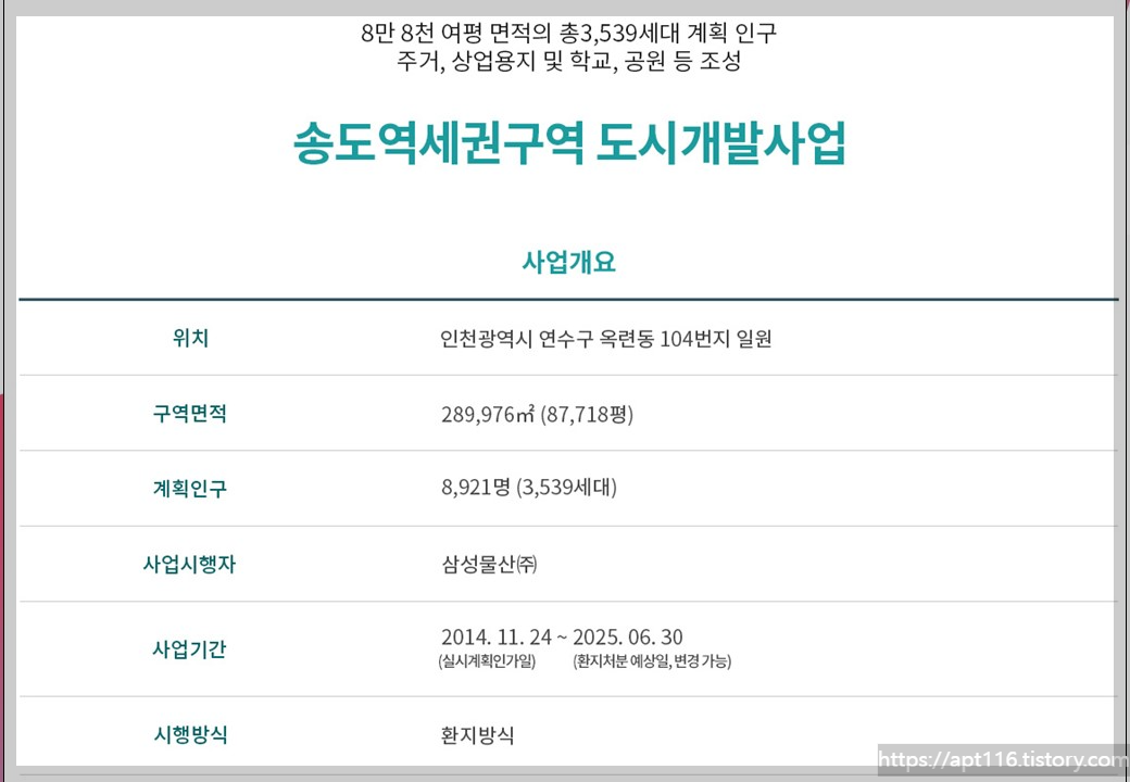 사업지 위치는 인천광역시 연수구 옥련동 104번지 일원,"송도역세권구역 도시개발사업" 사업지에 들어옵니다.