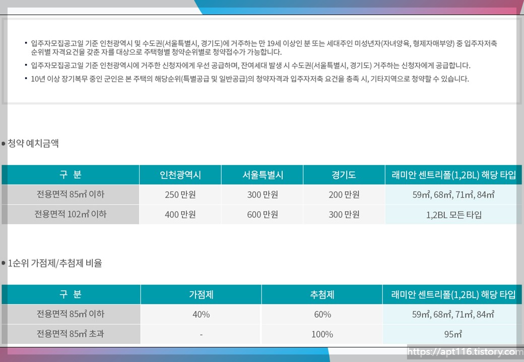 1순위 가점제 및 추첨제 비율은