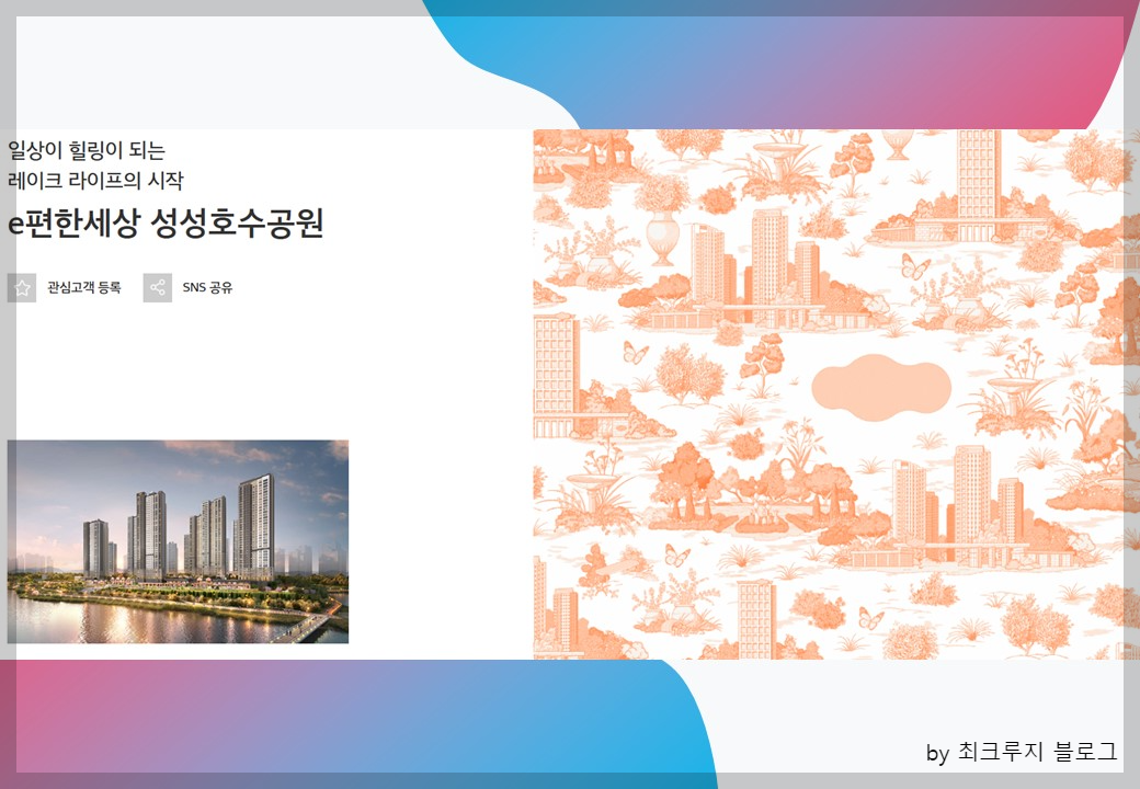 이상 이편한세상 성성호수공원 분양일정 및 청약정보를 알아보았으며 추후 입주자모집공고가 나오면 더욱 자세한 정보를 안내해 드리도록 하겠습니다.