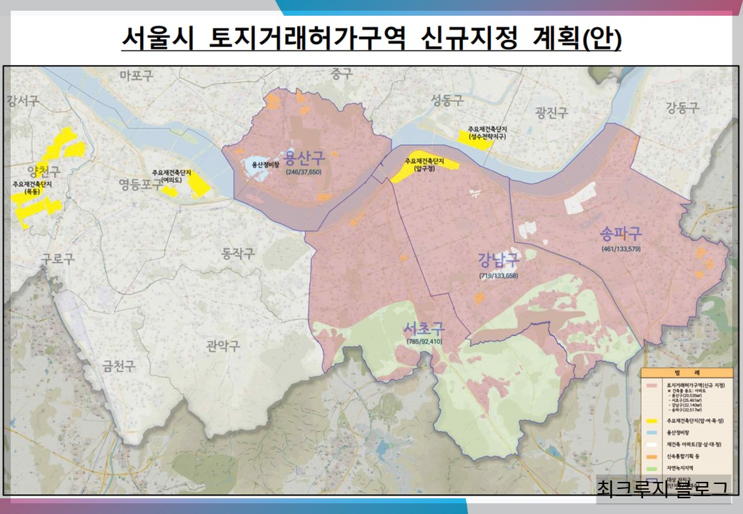 서울시가 기존의 토지거래허가구역 완화를 번복하고 오히려 추가로 포함을 해서 확대 재지정 했습니다.